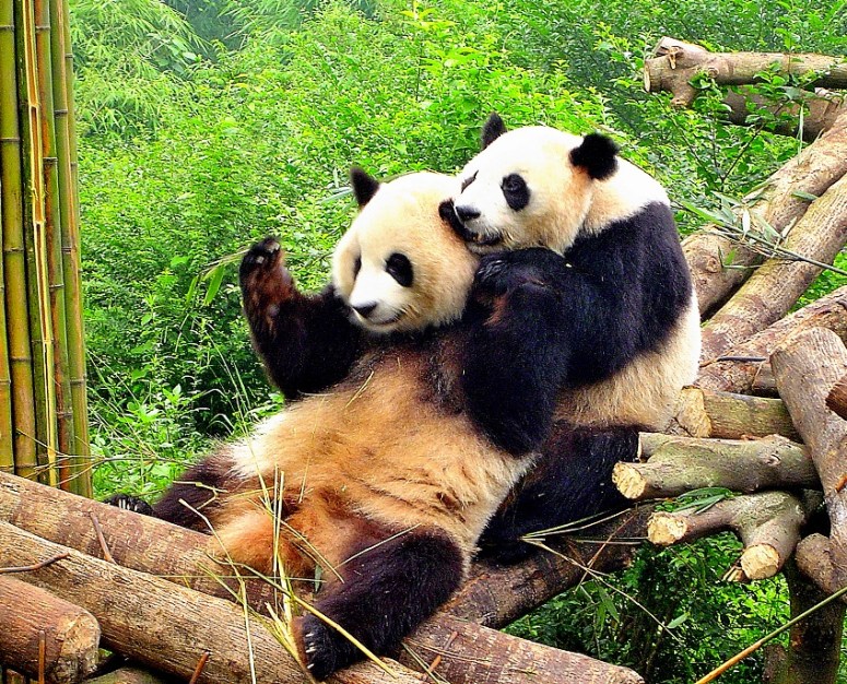 Giant pandas are known for their playful antics. Photo: Henry Lewis